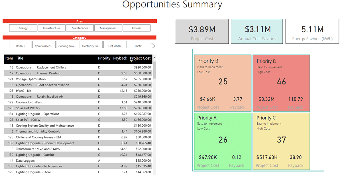 The EfficientSee® Dashboard is an intuitive, interactive dashboard which provides at-a-glance insights into your organisation’s energy performance. It highlights opportunities to save energy and cut emissions, supports the implementation of energy management projects and reports on their success.